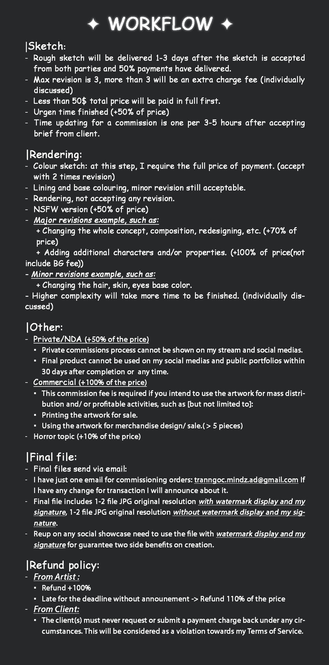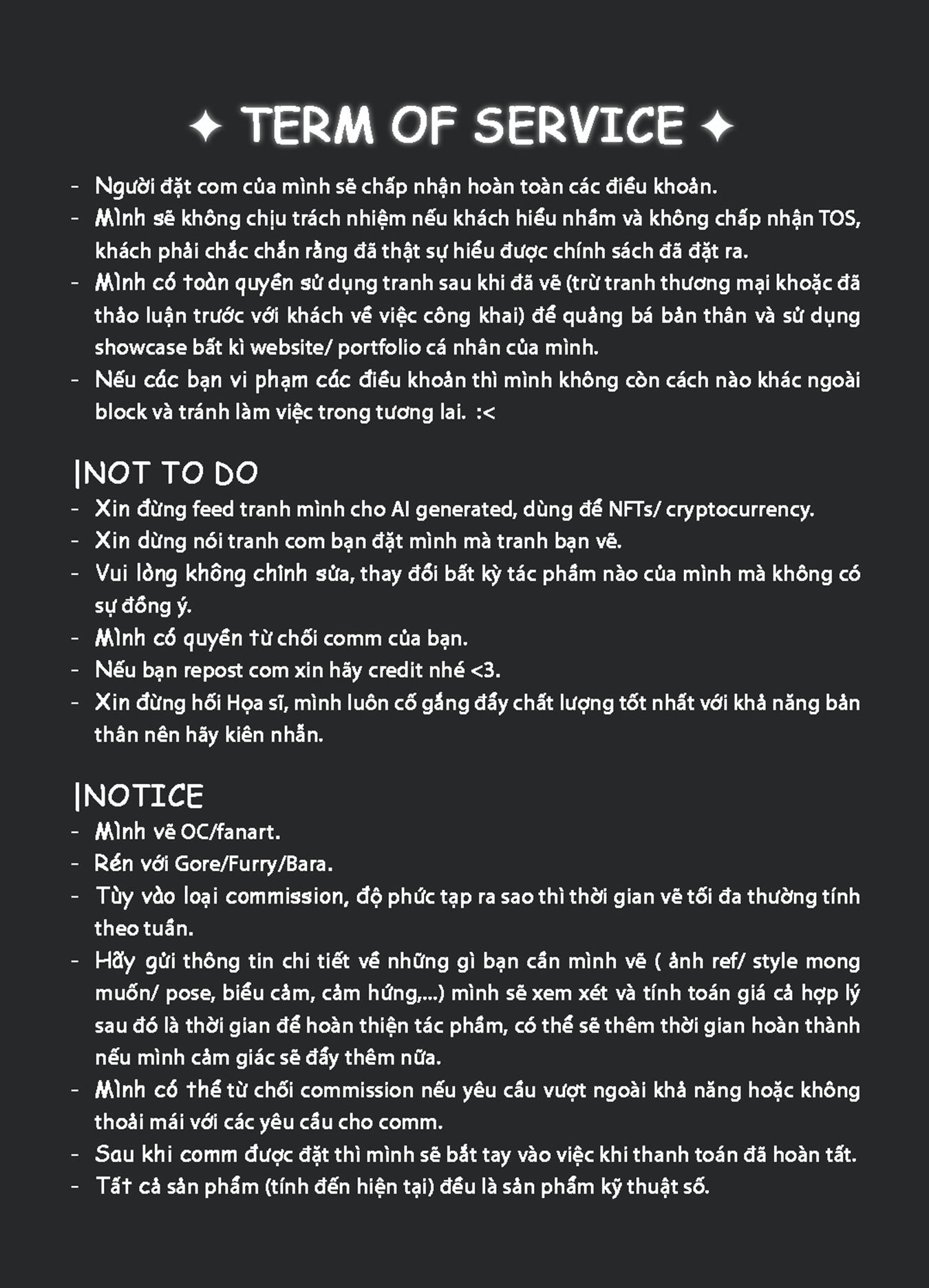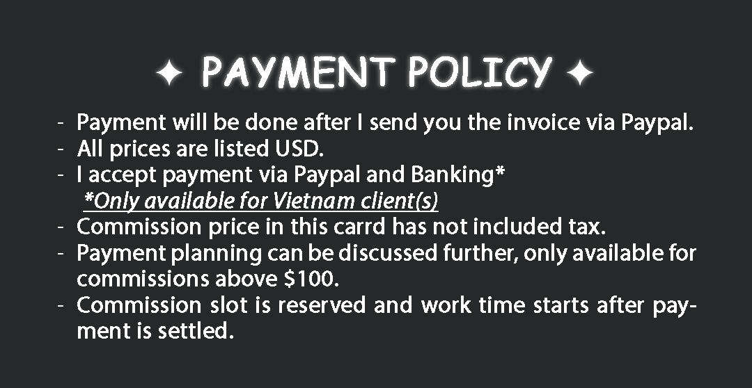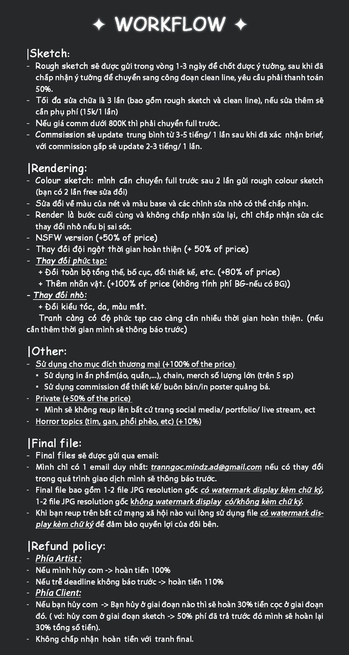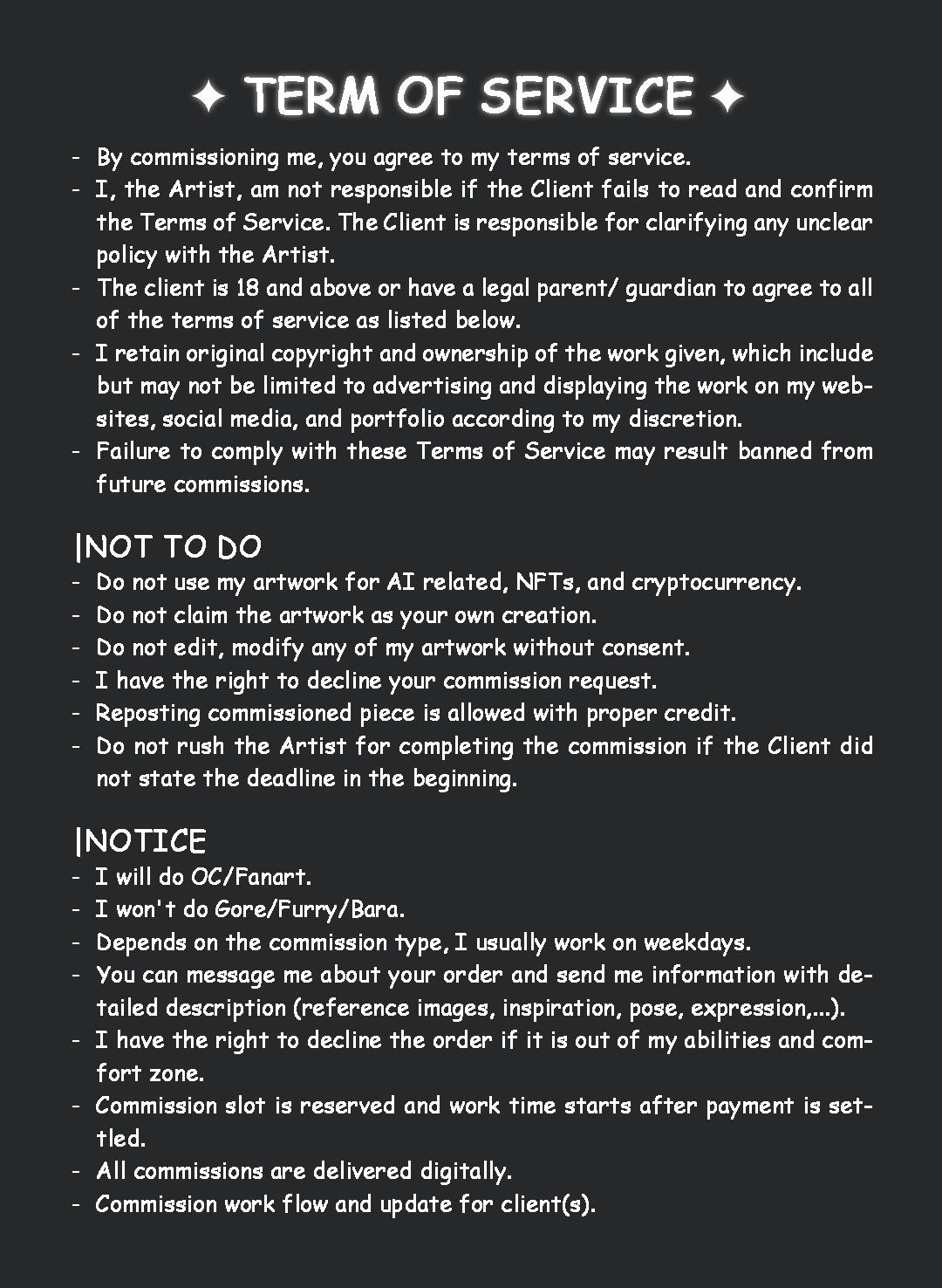 (✩) Đã bao gồm BG, story telling (tối đa 2 nhân vật trong 1 bức), lưu ý thời gian hoàn thành sẽ thay đổi tùy vào độ phức tạp của tranh.
